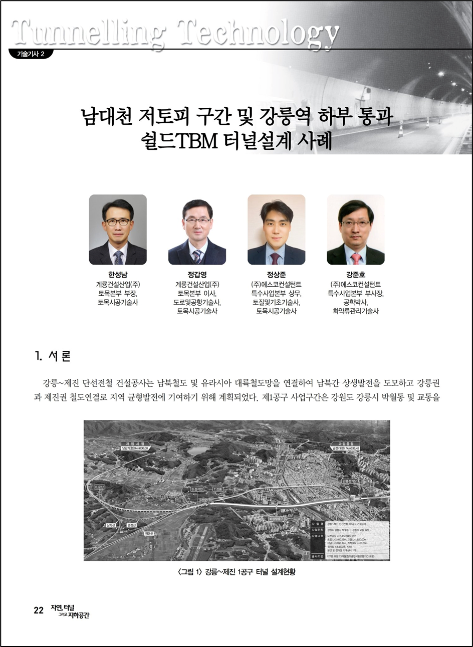 남대천 저토피 구간 및 강릉역 하부 통과 쉴드TBM 터널설계 사례 -Magazine of korean Tunnelling and Unde