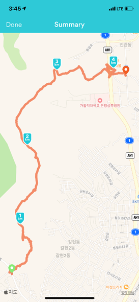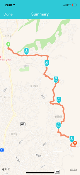위에서는 시간 기록을 살펴봤고 다음은 GPS로 기록한 거리 기록입니다.