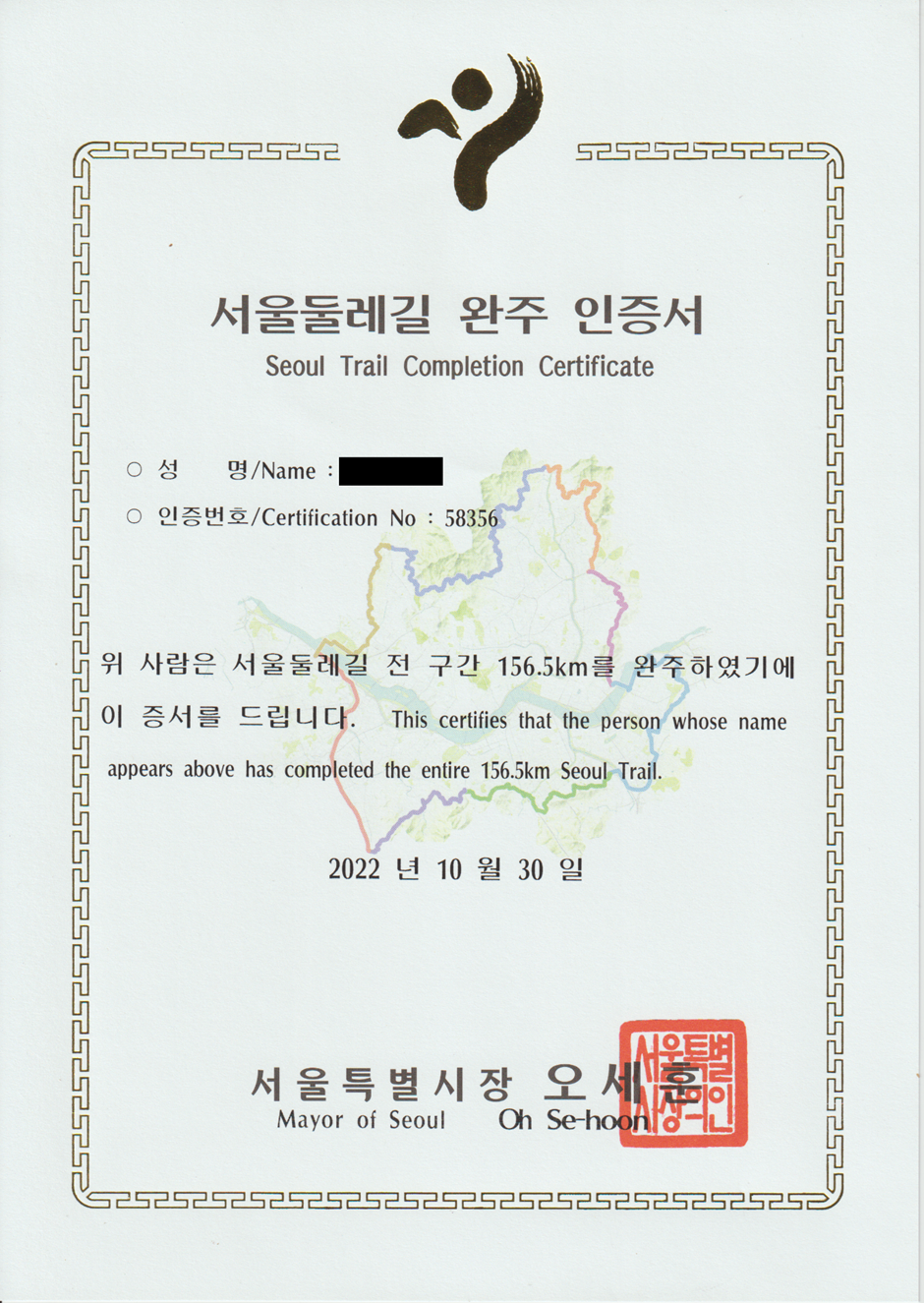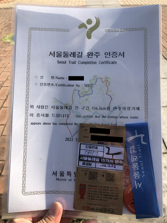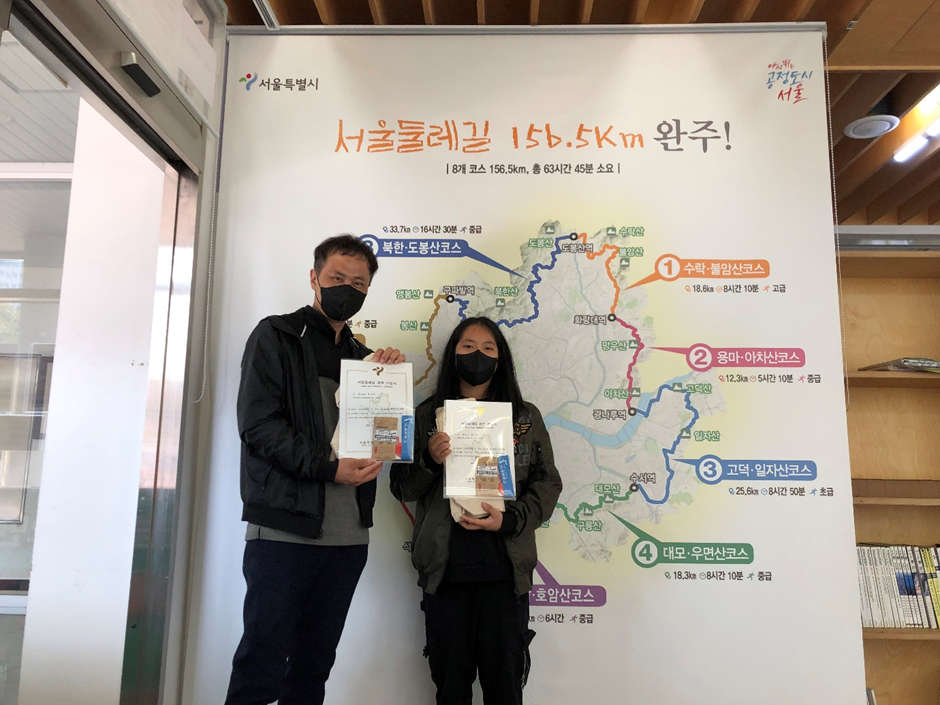 초등학교 3학년이었던 딸 아이와 걸어야 하니 무리할 생각은 전혀 없었습니다. 아이가 힘들다고 하면 곧장 집으로 갈 생각으로 시작했지만, 무조건 완주를 목표로 삼았습니다. 그리고 모든 이동은 대중교통만 이용하기로 했습니다. 딸 아이에게는 시작하면 끝을 낸다는 성취감과 도전의식을 얘기해주고 싶었고, 무엇보다 가족의 평생 잊지못할 소중한 추억을 만들고 싶었습니다. 하지만 막상 걷다 보니 생각하지 못했던 것들을 많이 얻었습니다. 서울에서 태어나 50년 가까이 살았지만 처음 가보는 곳들이 많았고, 몰랐던 역사적인 장소들과 신기한 것들을 딸 아이와 함께 보며 공부도 많이 된다는 점입니다. 그리고 서울 안에서 자연을 만끽할 수 있고 흙을 마음껏 밟을 수 있는 곳을 알게 되어 기뻤고, 서울의 전경을 내려다 보는 수많은 경치 좋은 곳을 발견했다는 점이 뜻밖의 수확이었습니다. 서울을 재발견 할 수 있어 좋았습니다.