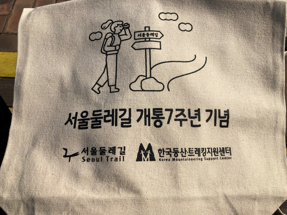 완주하고 도봉산역에 있는 창포원을 다시 찾았습니다. 서울 둘레길 안내센터에 스탬프 완료한 것을 들고 가면 완주 인증서와 기념품을 받을 수 있습니다. 기념품은 에코백과 뱃지, 그리고 둘레길을 걸으며 항상 봐왔던 리본입니다. 둘레길에는 주황색 리본이 있는데 기념품은 파란색을 주더군요. 정말 너무 감격스럽고 딸 아이가 너무 기특하고 자랑스러웠습니다.