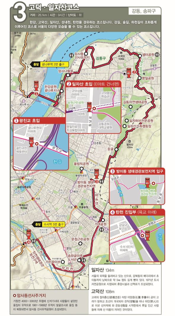 | 서울둘레길 3코스 (고덕, 일자산코스) | 26.1 |