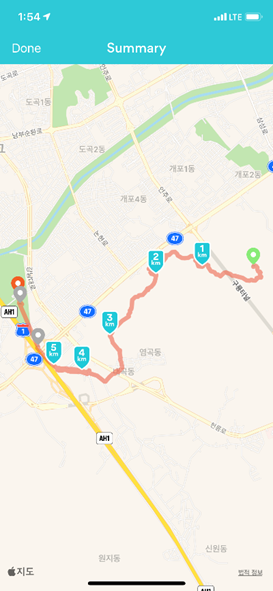 위에서는 시간 기록을 살펴봤고 다음은 GPS로 기록한 거리 기록입니다.