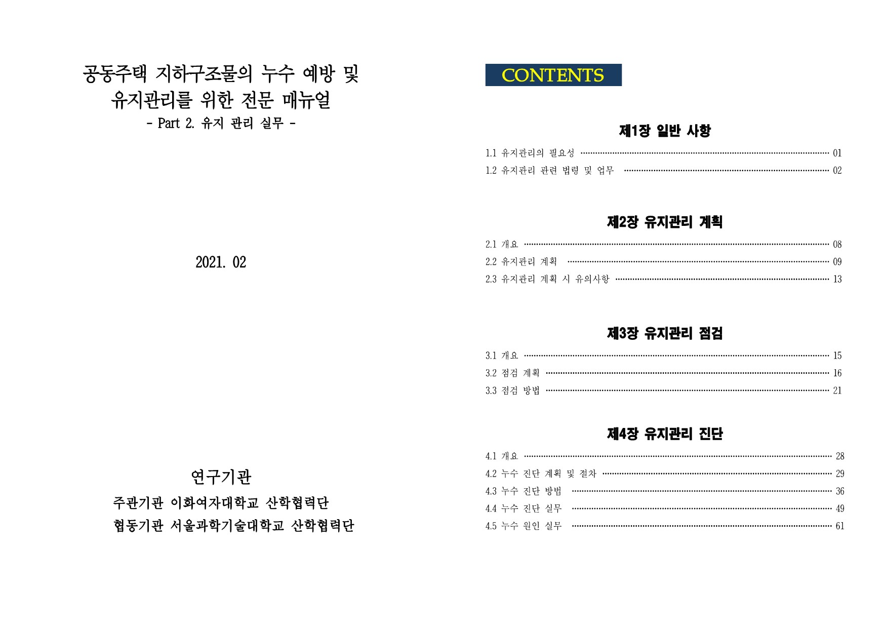 공동주택 지하구조물의 누수 예방 및 유지관리를 위한 전문 매뉴얼 - Part 2. 유지 관리 실무