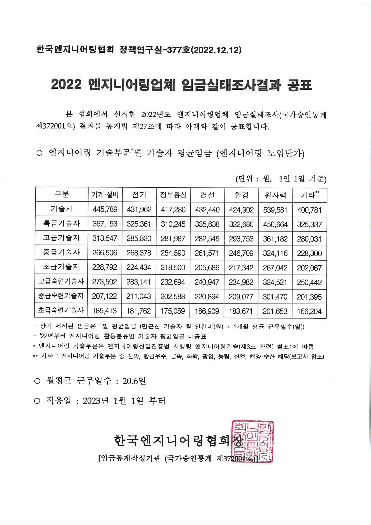 아. 2022.12.120: 2022년 엔지니어링업체 임금실태조사 공표(최근 공표일)