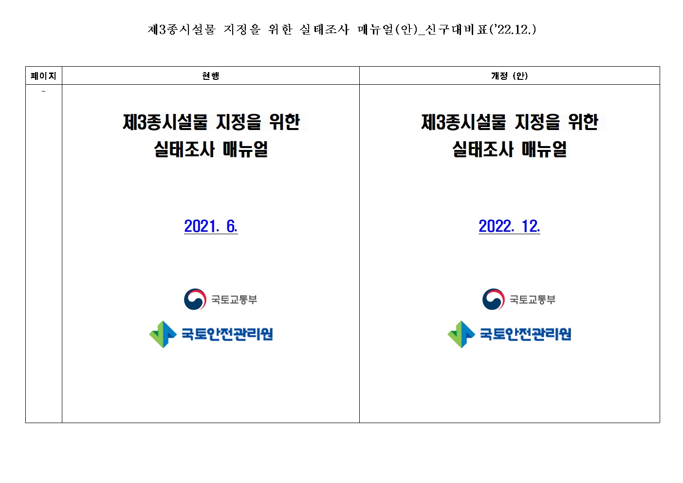 제3종시설물 지정을 위한 실태조사 매뉴얼 및 신구대비표