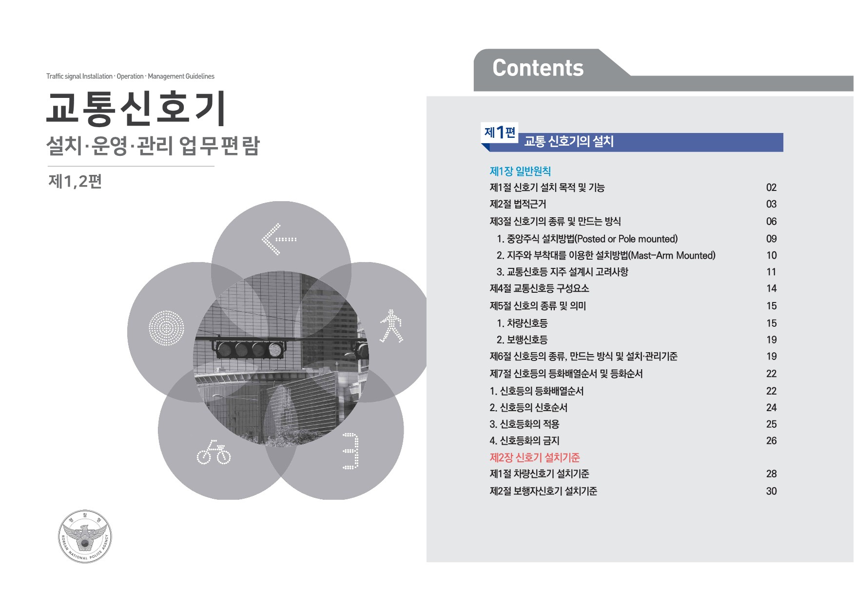 [도로교통법] 제2조(정의) 15. “신호기”란 도로교통에서 문자·기호 또는 등화(燈火)를 사용하여 진행·정지·방향 전환·주의 등의 신호를 표시하기 위하여 사람이나 전기의 힘으로 조작하는 장치를 말한다. 제3조(신호기 등의 설치 및 관리) ① 특별시장·광역시장·제주특별자치도지사 또는 시장·군수(광역시의 군수를 제외 한다. 이하 “시장등”이라 한다)는 도로에서의 위험을 방지하고 교통의 안전과 원활한 소통을 확보하기 위하여 필요하다고 인정하는 때에는 신호기 및 안전표지(이하 “교통 안전시설”이라 한다)를 설치·관리하여야 한다. 다만, 「유료도로법」 제6조의 규정에 의한 유료도로에서는 시장등의 지시에 따라 그 도로관리자가 이를 설치·관리하여야 한다. ② 시장등 및 도로관리자는 제1항에 따라 교통안전시설을 설치·관리할 때에는 제4조에 따른 교통안전시설의 설치·관리기준에 적합하도록 하여야 한다. ③ 도(道)는 제1항에 따라 시장이나 군수가 교통안전시설을 설치·관리하는 데에 드는 비용의 전부 도는 일부를 시(市)나 군(郡)에 보조할 수 있다.