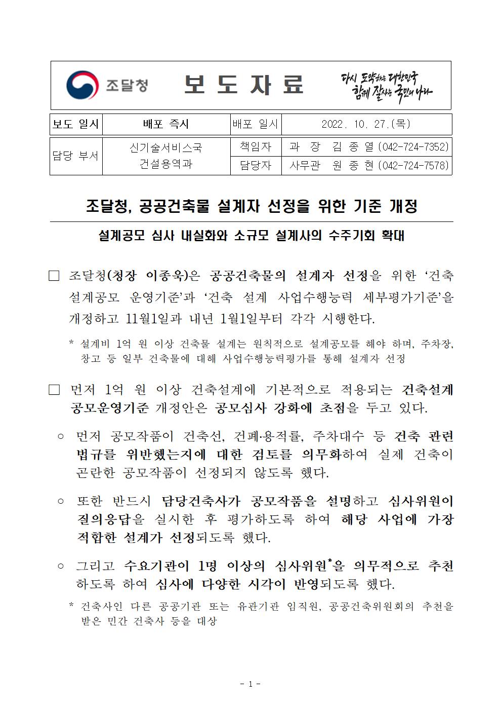 조달청, 공공건축물 설계자 선정을 위한 기준 개정