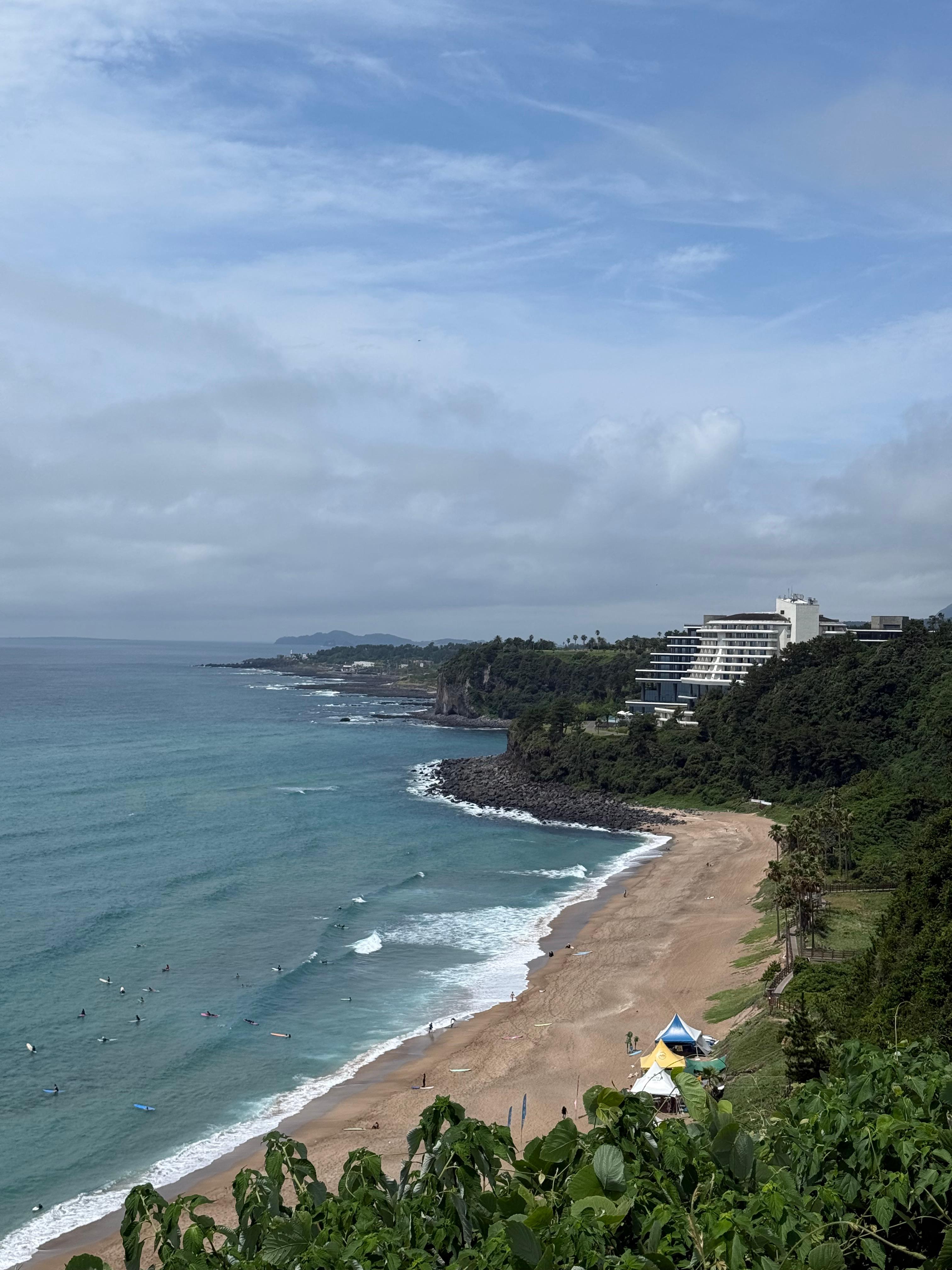 힘들었지만 위로 올라가 보니 중문 색달 해수욕장과 파르나스 호텔이 보인다.