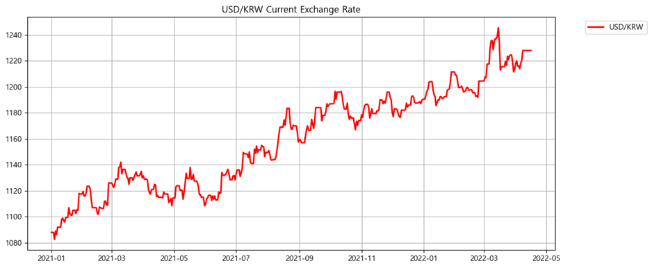 첫 부분은 2021년 1월 1일부터 현재까지 시세의 변동 그래프들입니다. 2021년부터 정리한 이유는 특별히 없습니다. 이것저것 해보니 가독성이 그나마 괜찮아서 선택한 것 뿐입니다. 그리고는 최근 월요일부터 금요일까지 시세 변동 그래프의 순서로 보여드리겠습니다.