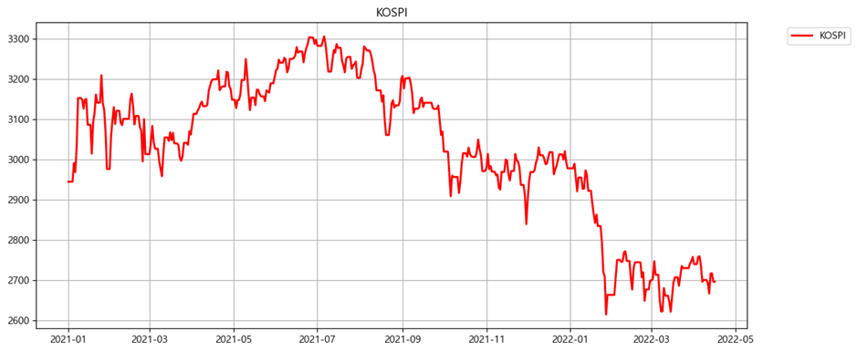 2022년 4월 2주차 각종 시세 그래프 – 코스피, 코스닥, 다우존스, 나스닥, 항셍, 유가, 환율, 금, 은